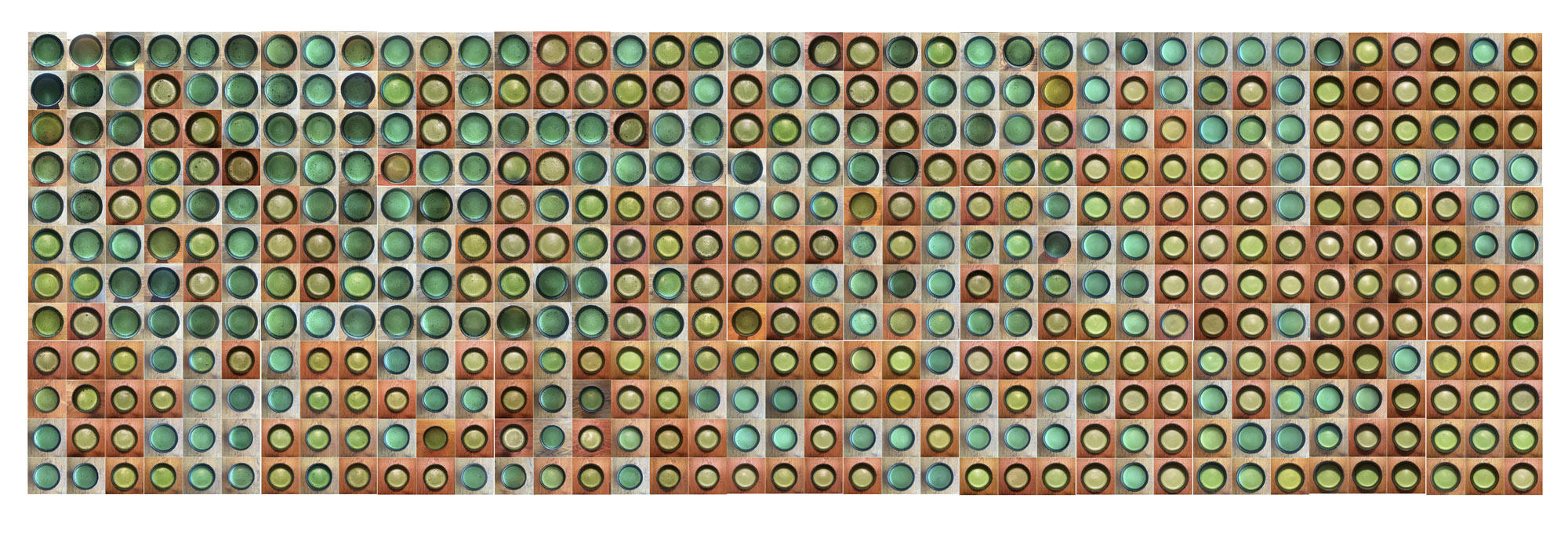 Over the course of 49 weeks, between July of 2014 and July of 2015 I drank 888 bowls of Thin Matcha. Before drinking each bowl, I took a picture of it, on the same table. The times of day varied. And my matcha making skills improved. I began this journey out of an inner necessity. I drank matcha tea but did not know much about it, about its origins, about where my tea bowl came from and so on.